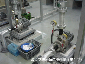このシステムを有効に使用するためには、ポンプ及び塩素滅菌装置の点検・水槽の清掃が欠かせません又、薬液の量等常時確認が必要です。