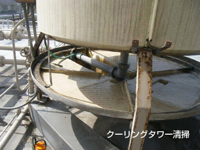 クーリングタワー(冷却塔)は、気化熱を利用して冷却水をつくる重要な空調設備です。 冷房シーズン前及び、シーズン終了後にクーリングタワーの清掃・点検をして、シーズン稼働中トラブルの無いように保守管理をする事が大切です。また機器類の寿命を長持ちさせるうえでもメンテナンスが必要です。